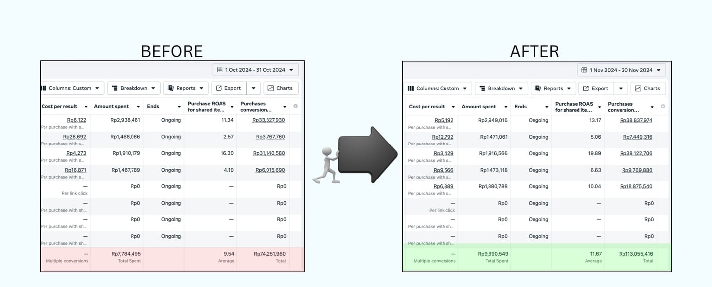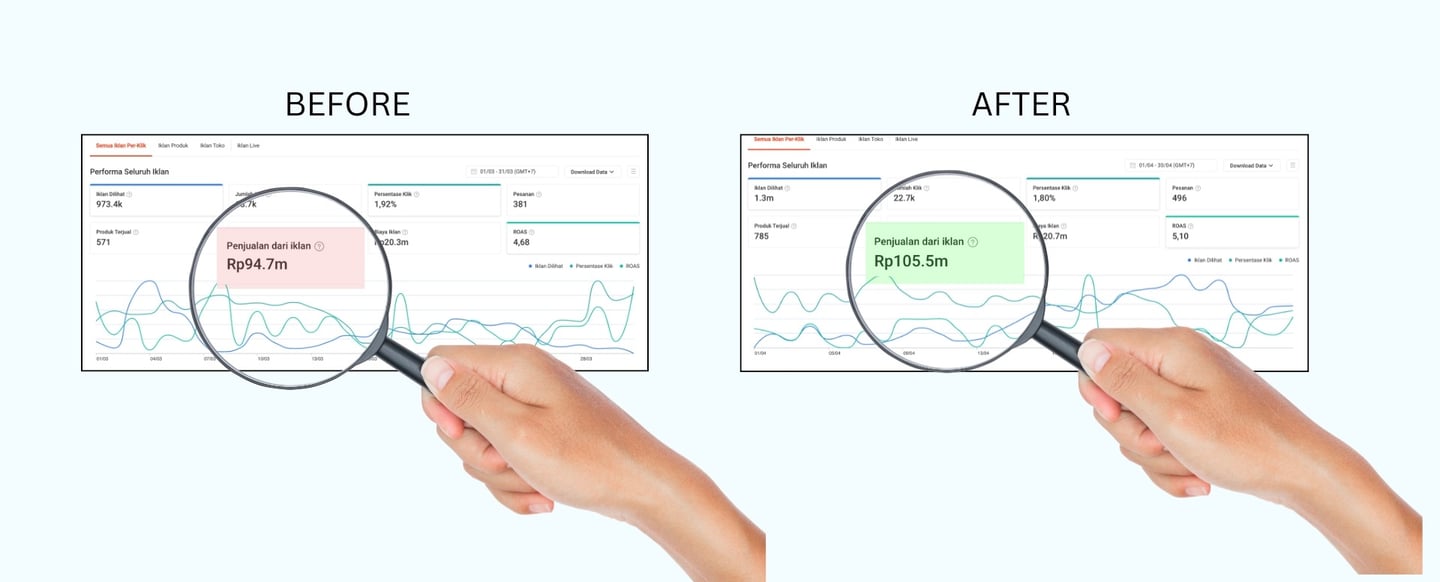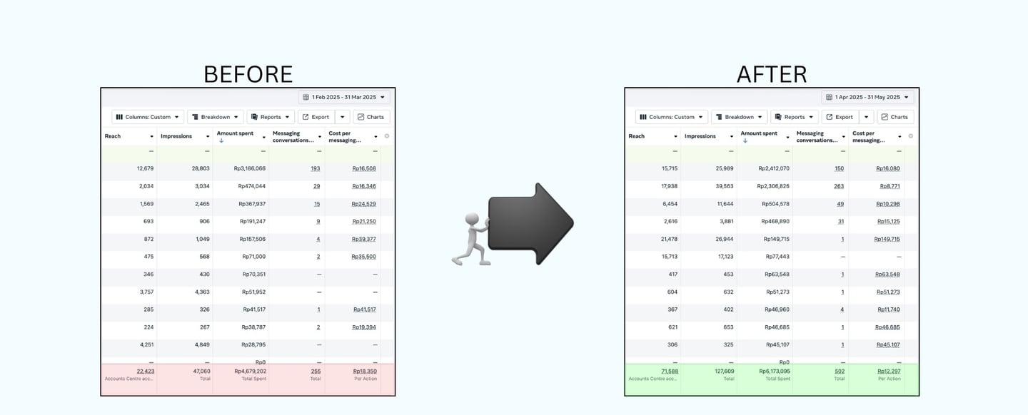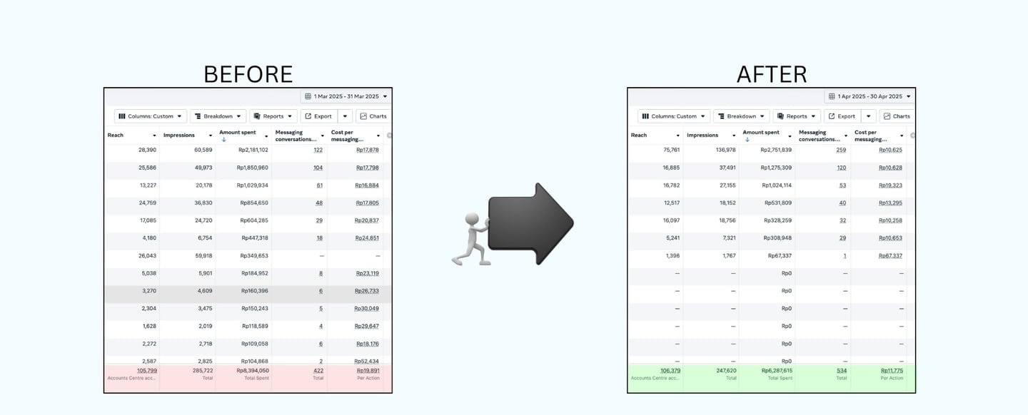Bahkan ketika kami sudah menemukan campaign yang performanya bagus, kami tetap terus menguji versi lain untuk menemukan hasil yang lebih optimal.