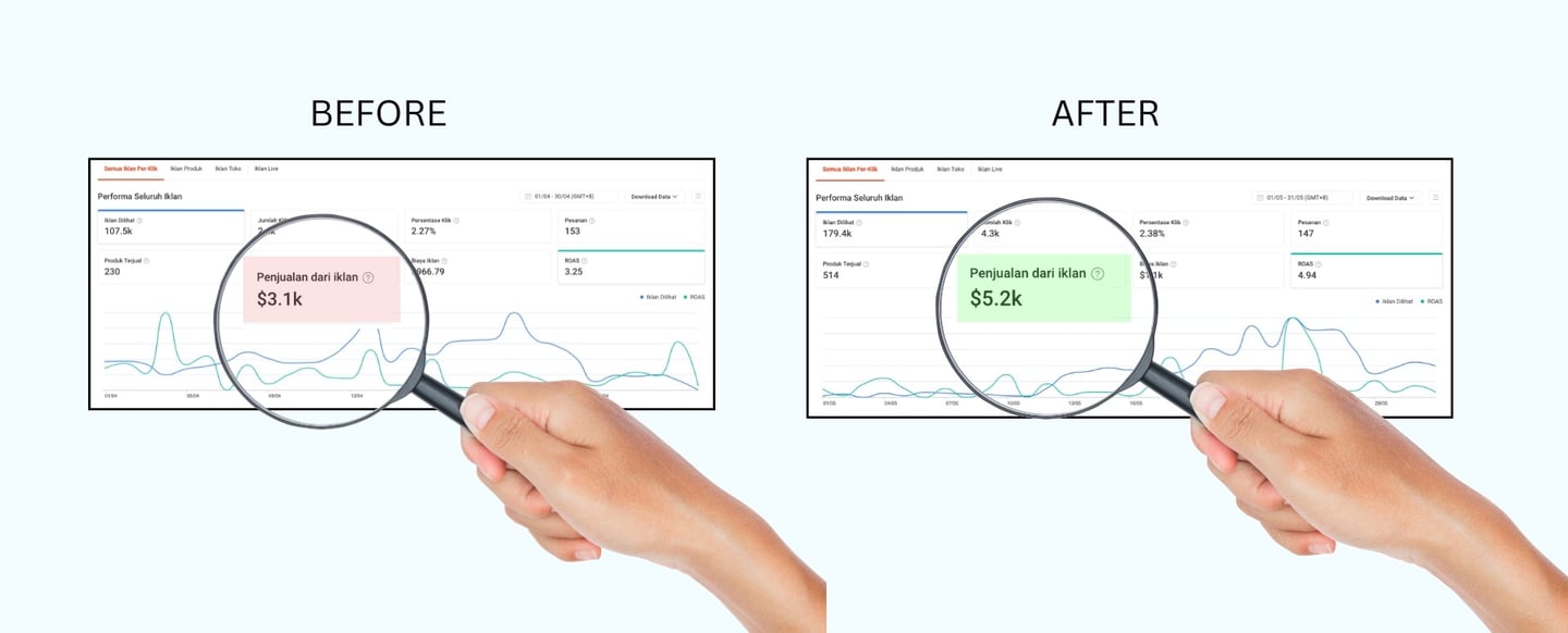 Kami adalah agensi pemasaran digital yang berfokus pada hasil nyata, bukan sekadar tayangan atau klik. Kami bantu bisnis Anda berkembang melalui iklan di Meta, TikTok dan Shopee yang terbukti efektif.